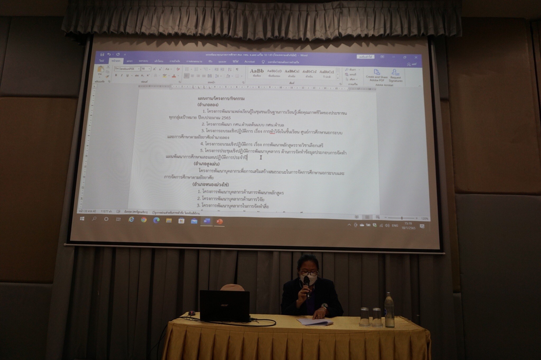 วันที่ 19 มกราคม 2565 นำโดยนางสาวรติรัตน์ อินต์ธะวิชัย ผอ.กศน.อำเภอลอง พร้อมด้วยนางอัจจิมา วรรณเลิศ ครูผู้ช่วย, นางสาวลัดดาวัลย์ ซุ่นฮะ ครูอาสาฯ, นายศุภวิชญ์ สวนจักร ครูอาสาฯ , นางขวัญวลี วงศ์ดาว ครูกศน.ตำบล และนายภาสกร ถาเงิน ครูกศน.ตำบล ร่วมประชุมเชิงปฏิบัติการการจัดทำแผนพัฒนาการศึกษานอกระบบและการศึกษาตามอัธยาศัย สำนักงาน กศน.จังหวัดแพร่ พ.ศ.2566-2570 ตั้งแต่วันที่ 17-19 มกราคม 2565 ณ โรงแรมน้ำทอง อำเภอเมืองน่าน จังหวัดน่าน