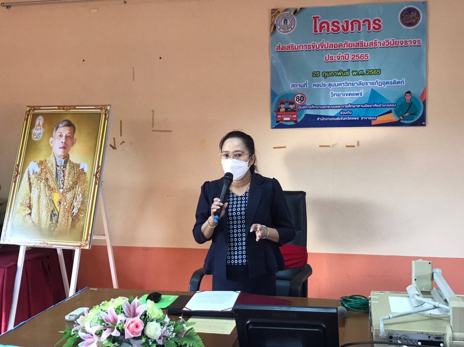 วันที่ 25 กุมภาพันธ์ 2565 นางสาวรติรัตน์ อินต์ธะวิชัย ผอ.กศน.อำเภอลอง มอบหมายให้คณะครูและบุคลากร กศน.อำเภอลอง ร่วมกับสำนักงานขนส่งจังหวัดแพร่ สาขาลอง ดำเนินโครงการส่งเสริมการขับขี่ปลอดภัยเสริมสร้างวินัยจราจร ประจำปีงบประมาณ 2565 ณ หอประชุมมหาวิทยาลัยราชภัฏอุตรดิตถ์วิทยาเขตลอง