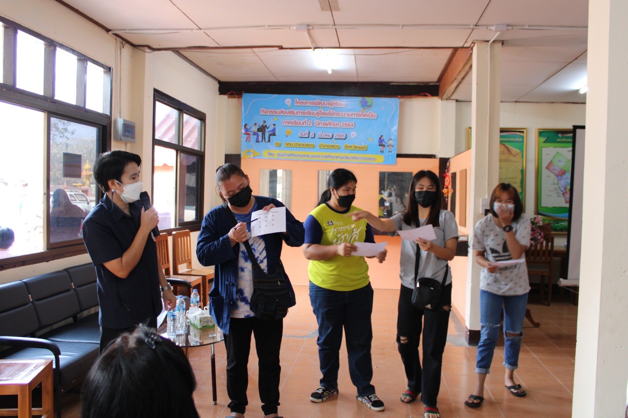 วันที่ 2 มีนาคม 2565 นางสาวรติรัตน์ อินต์ธะวิชัย ผอ.กศน.อำเภอลอง พร้อมด้วยคณะครูและบุคลากร กศน.อำเภอลอง ได้รับเกียรติจากนายเกียรติศักดิ์ กันฉิ่ง นายจันทร์ มะณีวรรณ นายศุภฤกษ์ ชัยชนะ และคณะ มาเป็นวิทยากรให้ความรู้ ตามโครงการพัฒนาผู้เรียน กิจกรรมส่งเสริมการเรียนรู้โดยใช้กระบวนการคิดเป็น ภาคเรียนที่ 2 ปีการศึกษา 2564 ให้กับนักศึกษา กศน.อำเภอลอง ณ ศูนย์ฝึกอาชีพชุมชน กศน.อำเภอลอง