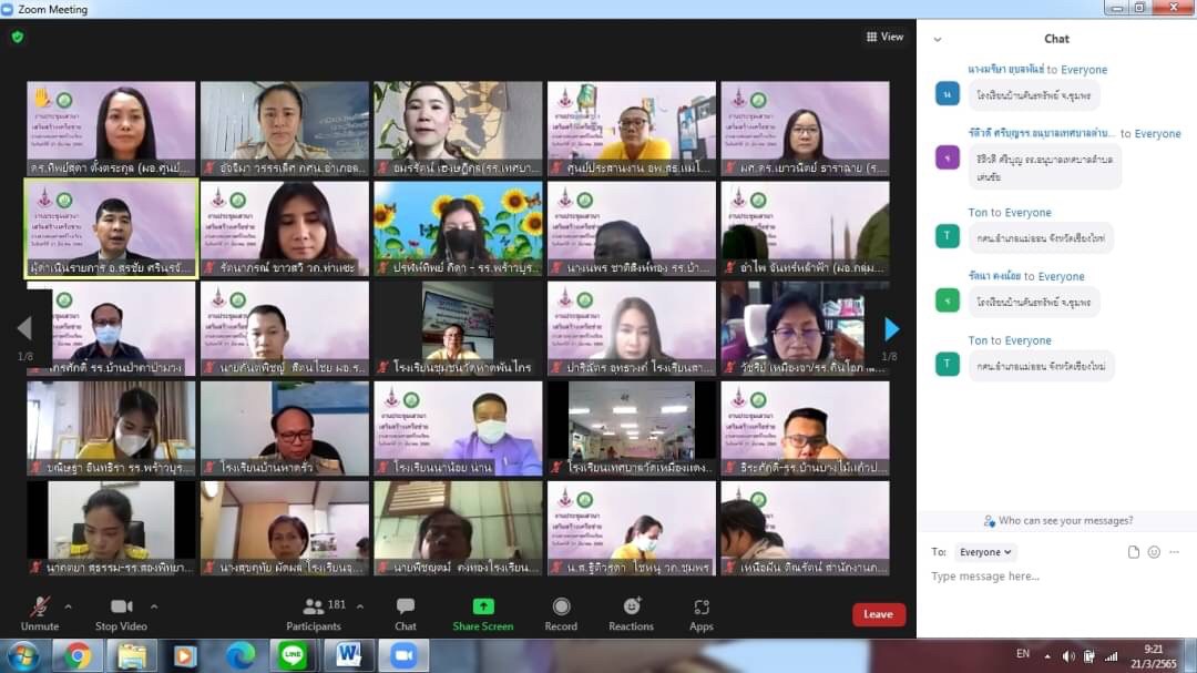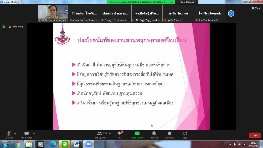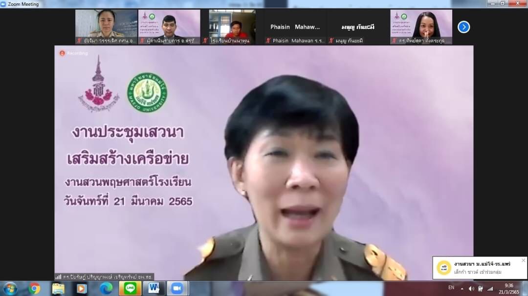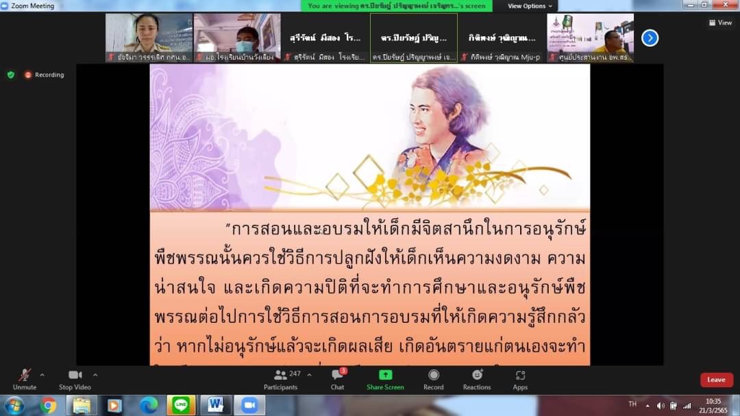วันที่ 21 มีนาคม 2565 นางสาวรติรัตน์ อินต์ธะวิชัย ผอ.กศน.อำเภอลอง มอบหมายให้ นางอัจจิมา วรรณเลิศ ครูผู้ช่วย เป็นผู้แทนเข้าร่วมการประชุมแนวทางการสนองพระราชดำริดำเนินการโครงการขับเคลื่อนงานสวนพฤกษศาสตร์โรงเรียนตามโครงการอนุรักษ์พันธุกรรมพืช อันเนื่องมาจากพระราชดำริ สมเด็จพระเทพรัตนราชสุดาสยามบรมราชกุมารี (อพ.สธ) ผ่านระบบ Zoom Meeting