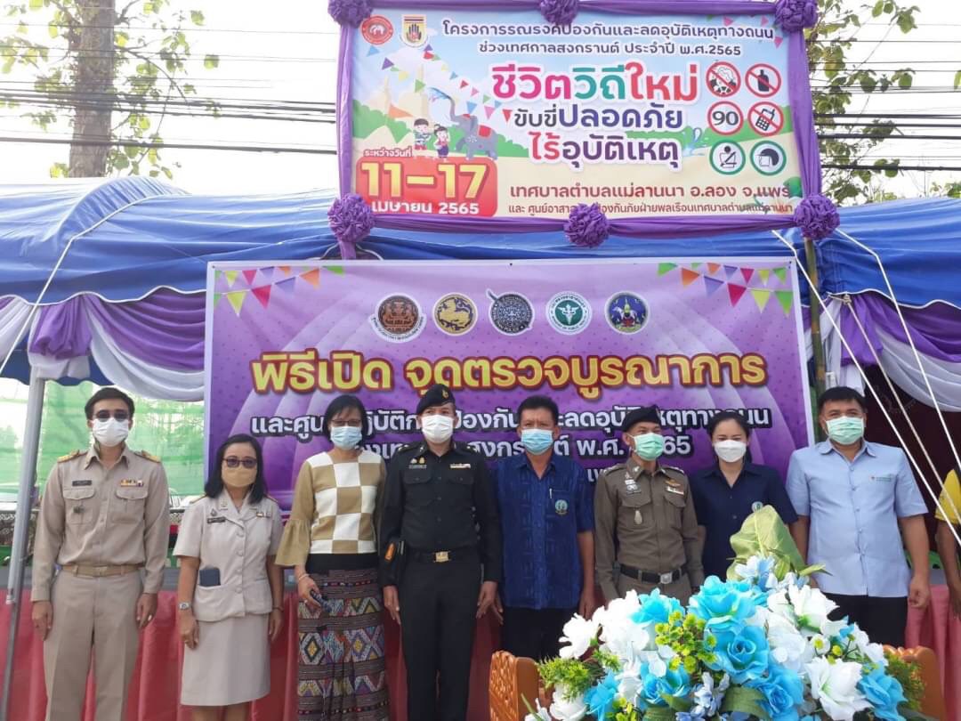 วันที่ 11 เมษายน 2565 นางสาวรติรัตน์ อินต์ธะวิชัย ผอ.กศน.อำเภอลอง มอบหมายให้ นางอัจจิมา วรรณเลิศ ครูผู้ช่วย และนางสาวจตุรพร ศรีจันทรากูล ครู กศน.ตำบลบ่อเหล็กลอง เข้าร่วมพิธีเปิดศูนย์ปฏิบัติการป้องกันและลดอุบัติเหตุทางถนนช่วงเทศกาลสงกรานต์ พ.ศ.2565 ณ บริเวณหน้ามหาวิทยาลัยราชภัฏอุตรดิตถ์ วิทยาเขตแพร่