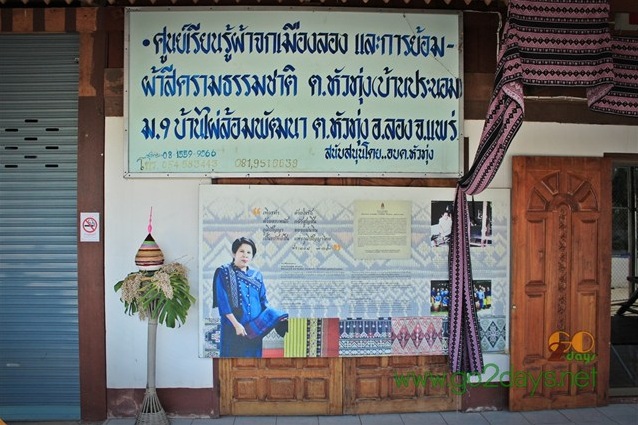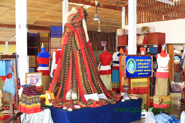 ๒) ห้องผ้าจกเมืองลอง แสดงผ้าซิ่นตีนจกเอกลักษณ์ไทยยวนเมืองลอง ลวดลายโบราณ ผ้าย้อมสีคราม และผลงานชิ้นพิเศษที่ได้รับรางวัล