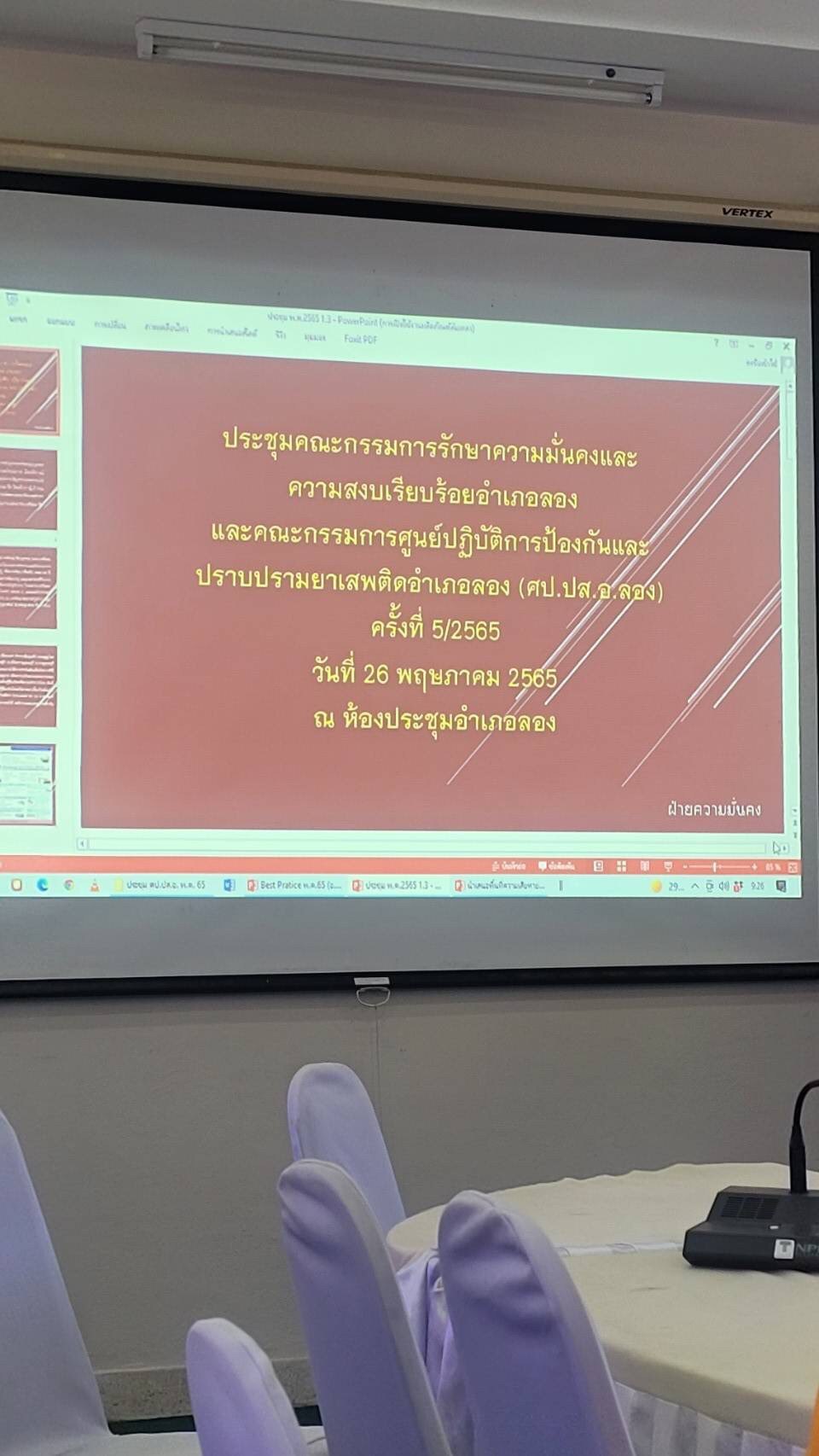 วันที่ 26 พฤษภาคม 2565 นางสาวรติรัตน์ อินต์ธะวิชัย ผอ.กศน.อำเภอลอง มอบหมายให้นายภาสกร ถาเงิน ครู กศน.ตำบลบ้านปิน เข้าร่วมประชุมคณะกรรมการรักษาความมั่นคงปละความสงบเรียบร้อยอำเภอลอง และคณะกรรมการศูนย์ปฎิบัติการป้องกันและปราบปรามยาเสพติดอำเภอลอง (ศป.ปส.อ.ลอง) ครั้งที่ 5/2565 ณ ห้องประชุมอำเภอลอง