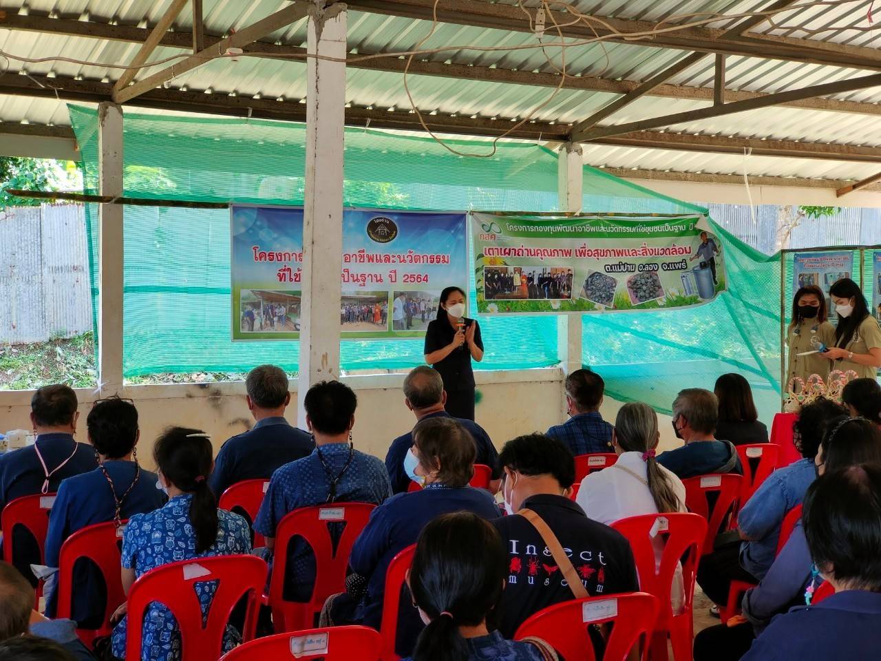 วันที่ 27 พฤษภาคม 2565 นางสาวรติรัตน์ อินต์ธะวิชัย ผู้อำนวยการกศน.อำเภอลอง มอบหมายให้นางอัจจิมา วรรณเลิศ ครูผู้ช่วย, นายศุภวิชญ์ สวนจักร ครูอาสาสมัคร, นายจิรพันธ์ จันหนิ้ว ครู กศน.ตำบลทุ่งแล้ง, นางสาววิยดา เกตุเอี่ยม ครู กศน.ตำบลปากกาง และนางสาวรุ่งฟ้า อะทะวงค์ ครู กศน.ตำบลแม่ปาน เข้าร่วมพิธีปิดโครงการพัฒนาอาชีพและนวัตกรรมที่ใช้ชุมชนเป็นฐาน พ.ศ.2564 ณ ศาลาประชาคม ม.1 ต.แม่ปาน อ.ลอง จ.แพร่