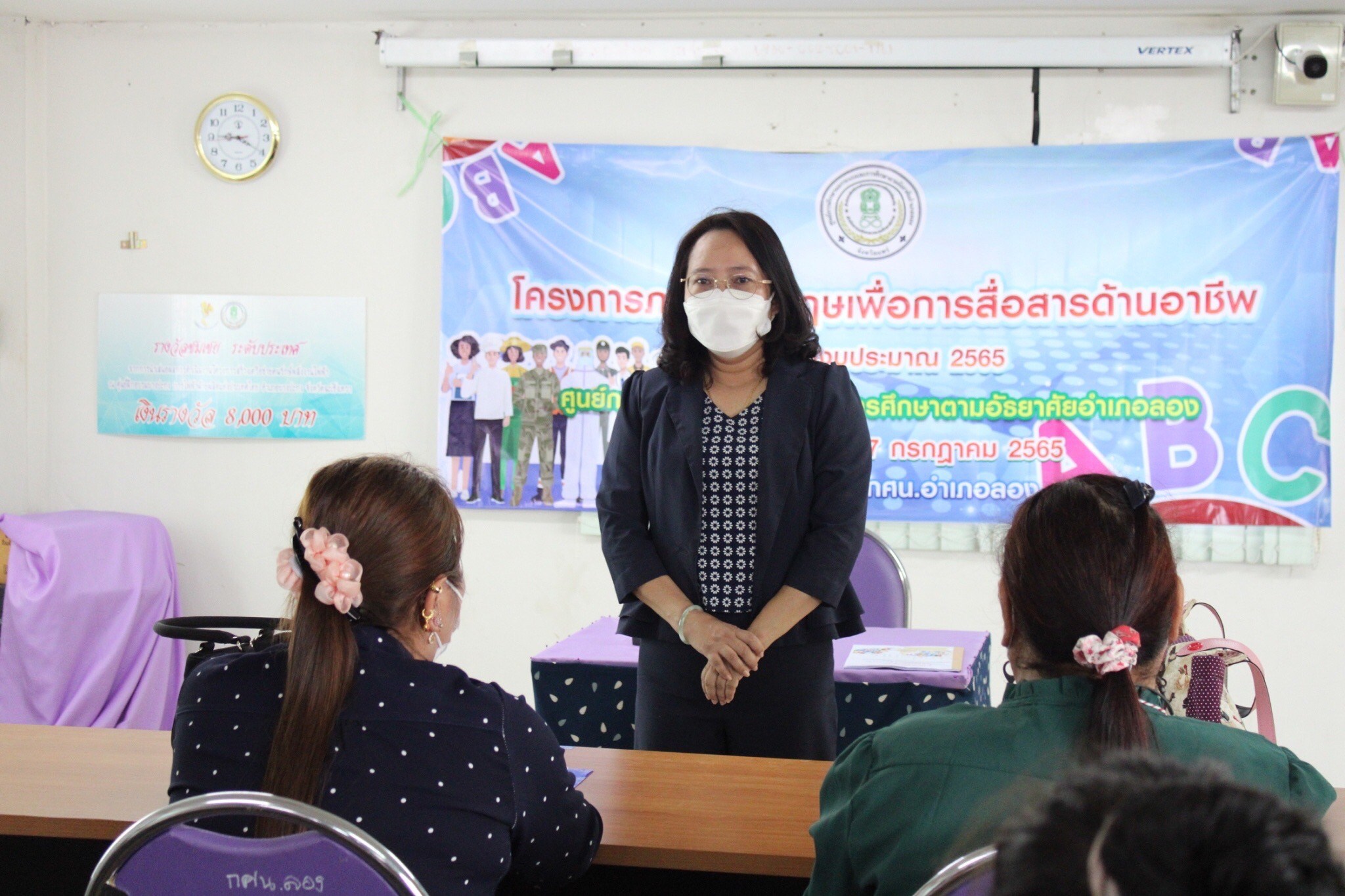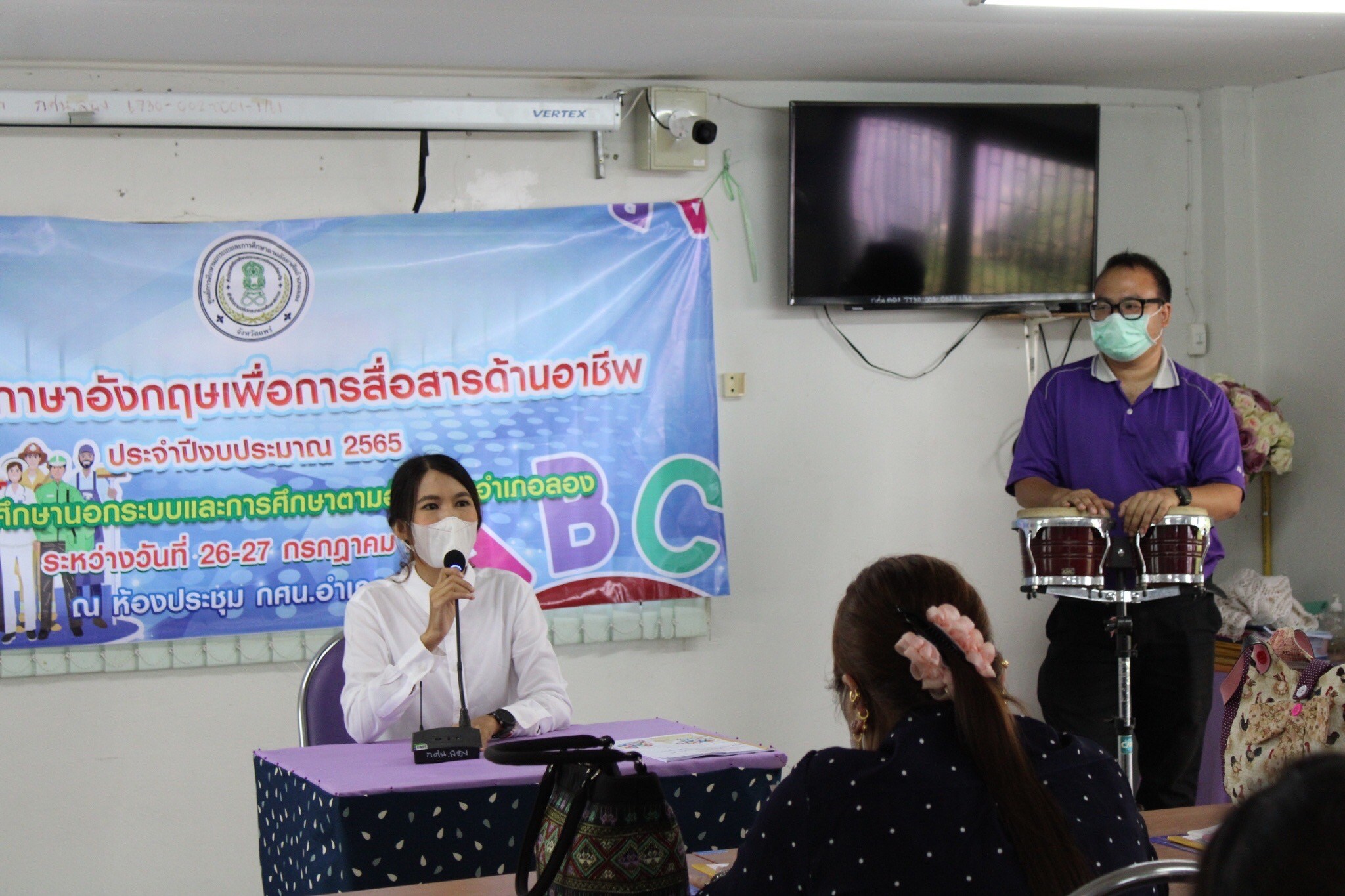 นางสาวรติรัตน์ อินต์ธะวิชัย ผอ.กศน.อำเภอลอง พร้อมด้วยคณะครูและบุคลากร ร่วมกับ นักศึกษา กศน.อำเภอลอง ดำเนินโครงการภาษาอังกฤษเพื่อการสื่อสารด้านอาชีพ ประจำปีงบประมาณ 2565 ระหว่างวันที่ 26-27 กรกฎาคม 2565 ณ ห้องประชุม กศน.อำเภอลอง โดยมีการฝึกสนทนาซื้อขายในแหล่งเรียนรู้ 3 แห่ง ได้แก่