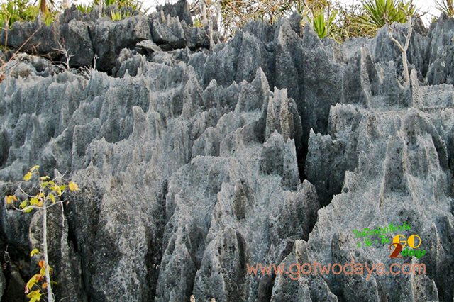 จากการสันนิษฐานพื้นที่เคยอยู่ในทะเลน้ำตื้นมาก่อน ทำให้เกิดลักษณะของหินปูนเป็นชั้นๆซ้อนทับกันอยู่ พอถูกลมฝนและพายุพัดกัดเซาะทุกวันๆ จึงช่วยขัดภูเขาหินเหล่านี้ให้มีลักษณะเพรียวบางมียอดแหลมเรียงรายอย่างสวยงาม เป็นแนวยาวต่อเนื่องในบริเวณกว้าง 50 ไร่ แต่ละแนวมีต้นจันทน์ผาขึ้นแซมเป็น ฉากหลัง สีเขียวขจี