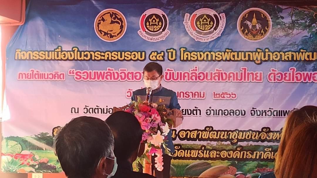 นางสาวรติรัตน์ อินต์ธะวิชัย ผอ.กศน.อำเภอลอง มอบหมายให้นางสาวรัชนีกร พิมสาร ครู,นายชาญวิทย์ อนุศาสน์ปรีชากุล ครูกศน.ตำบลเวียงต้า,นางสาวธิดารัตน์ ละมูล ครูกศน.ตำบลต้าผามอก ร่วมจัดนิทรรศการ เนื่องในวาระครบรอบ 54 ปี โครงการพัฒนาผู้นำอาสาพัฒนาชุมชน และต้อนรับนายชุติเดช มีจันทร์ผู้ว่าราชการจังหวัดแพร่ ในโอกาสที่ผู้ว่าราชการจังหวัดแพร่ออกปฏิบัติงานในพื้นที่ตำบลเวียงต้า โดยมีหน่วยงานภาคีเครือข่ายผู้นำท้องที่ ท้องถิ่น ภาคประชาชน ร่วมออกบูธ ร่วมกันปลูกต้นไม้ โดยท่านผู้ว่าได้ร่วมปลูกต้นยมหิน ต้นไม้ประจำจังหวัดแพร่ ณ วัดต้าม่อน ม3 ต.เวียงต้า อ.ลอง จ.แพร่