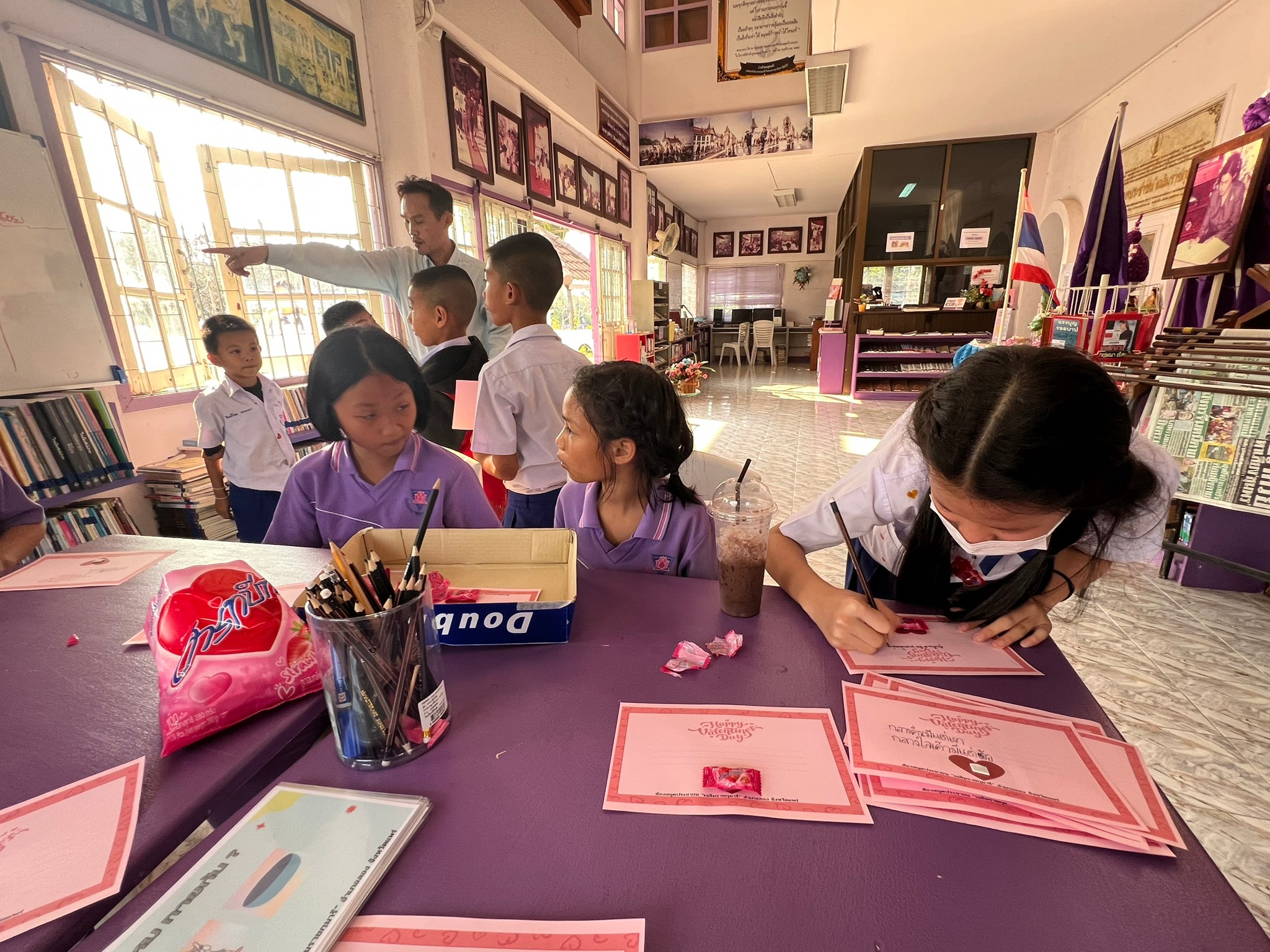 นางสาวรติรัตน์ อินต์ธะวิชัย ผอ.กศน.อำเภอลอง มอบหมายให้ นายรัชตะ จิตรบุณย์ บรรณารักษ์,นางสาวธนัญชนก จักรแหลม บรรณารักษ์ จัดกิจกรรมส่งเสริมการอ่านเนื่องในวันวาเลนไทน์ ห้องสมุดได้แจกลูกอมให้กับนักเรียนที่เข้าใช้บริการห้องสมุด และนักเรียนสามารถเขียนการ์ดอวยพรรับวาเลนไทน์ สามารถยืมหนังสือไปอ่านและร่วมกิจกรรมทายคำจากภาพ ณ ห้องสมุดประชาชน “เฉลิมราชกุมารี” อำเภอลอง จังหวัดแพร่
