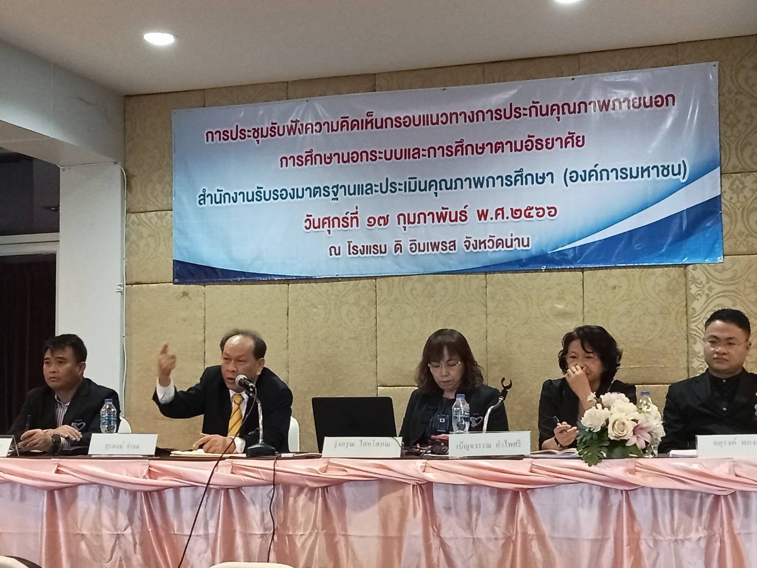 นางสาวรติรัตน์ อินต์ธะวิชัย ผอ.กศน.อำเภอลอง และนางสาวรัชนีกร พิมสาร ครู เข้าร่วมประชุมรับฟังความคิดเห็นกรอบแนวทางการประกันคุณภาพ ครั้งที่ 3 ประจำปีงบประมาณ พ.ศ.2566 เวลา 09.00-15.00 น. ณ โรงแรมดิเอ็มเพรส จังหวัดน่าน