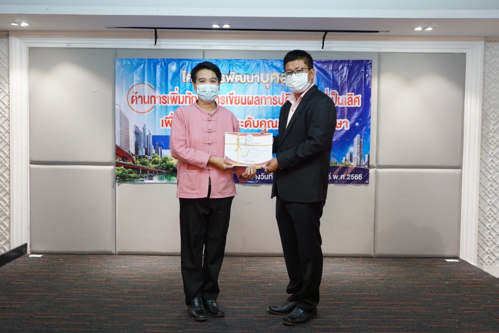 วันที่20-21 กุมภาพันธ์ 2566 นางสาวรติรัตน์ อินต์ธะวิชัย ผอ.กศน.อำเภอลอง พร้อมด้วยคณะครูและบุคลากร กศน.อำเภอลอง เข้าร่วมการอบรมโครงการพัฒนาบุคลากรด้านการเพิ่มทักษะการเขียนผลการปฏิบัติงานที่เป็นเลิศเพื่อมุ่งสู่การยกระดับคุณภาพการศึกษา สำนักงาน กศน.จังหวัดแพร่ โดยมีนายสมชาย เด็ดขาด เป็นประธานในการอบรม ณ โรงแรมธารีสอาร์ต อำเภอเมือง จังหวัดแพร่