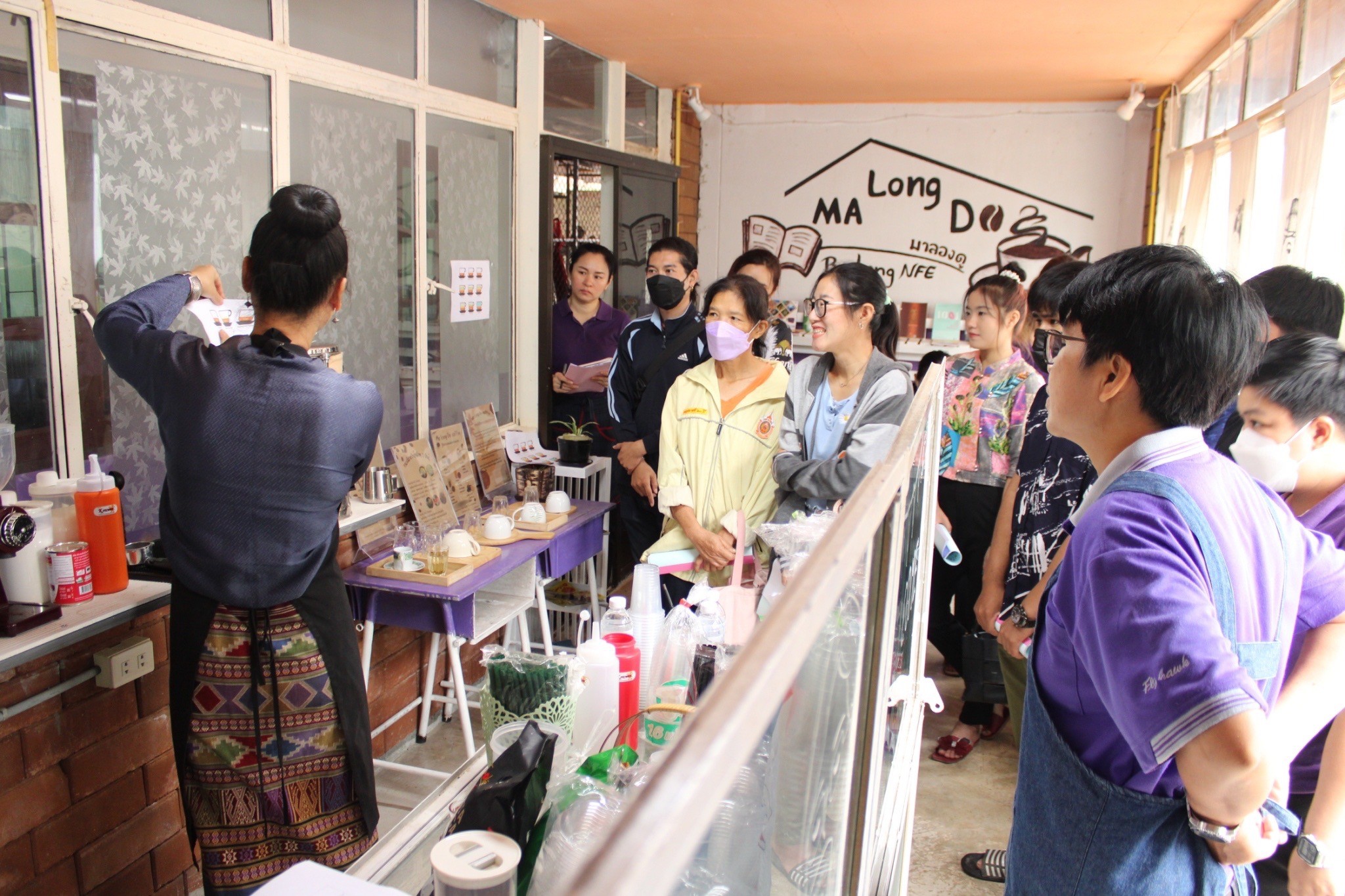 นางสาวรติรัตน์ อินต์ธะวิชัย ผอ.กศน.อำเภอลอง มอบหมายให้นายรัชตะ จิตรบุณย์ บรรณารักษ์,นางสาวธนัญชนก จักรแหลม บรรณารักษ์ และคณะครู บุคลากร กศน.ลอง ดำเนินโครงการ กิจกรรมอบรมส่งเสริมการอ่านผ่านอาชีพ บาริสต้า ภายใต้ โครงการศูนย์การเรียนรู้ต้นแบบ (Co – Learning Space)