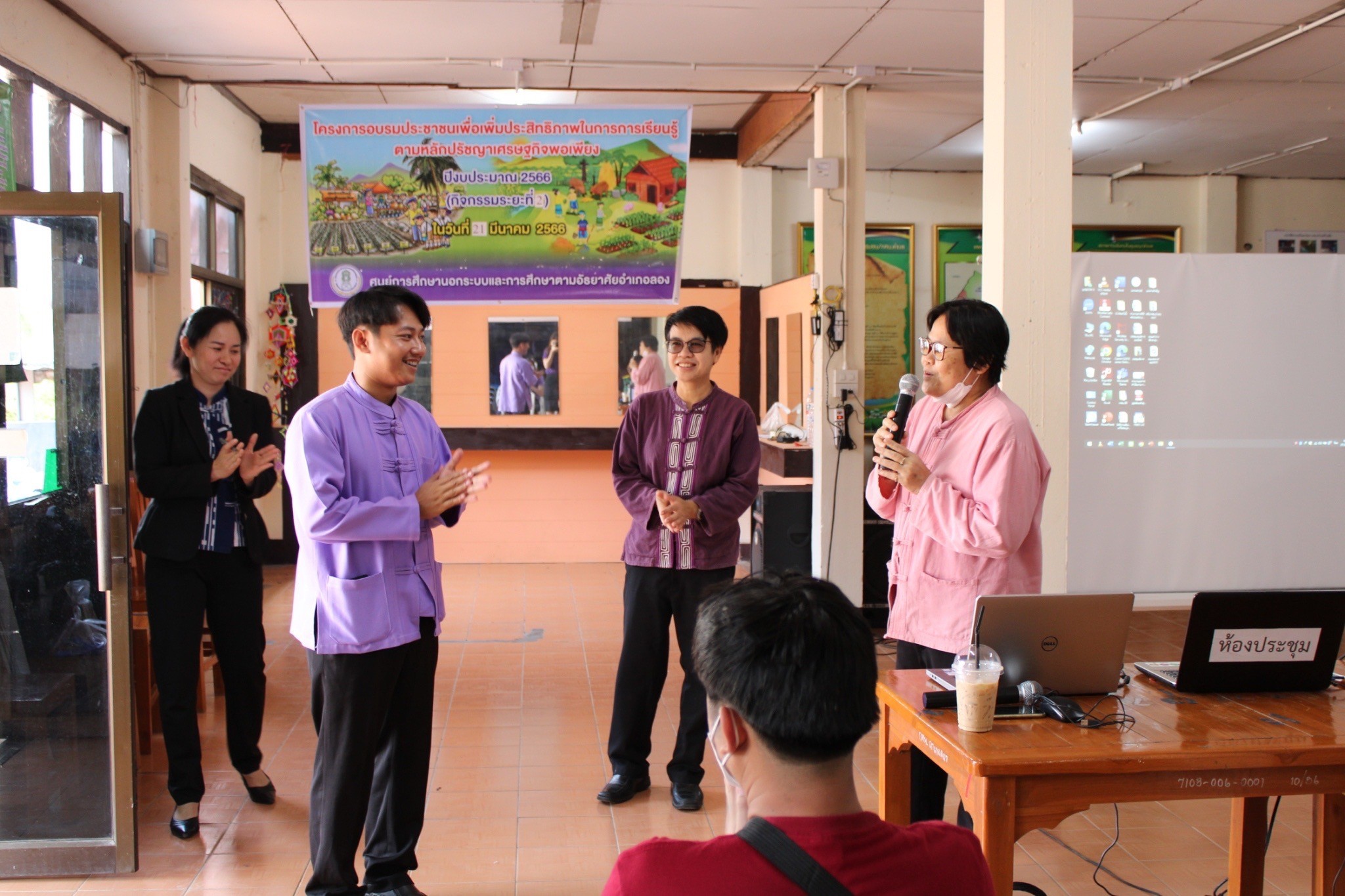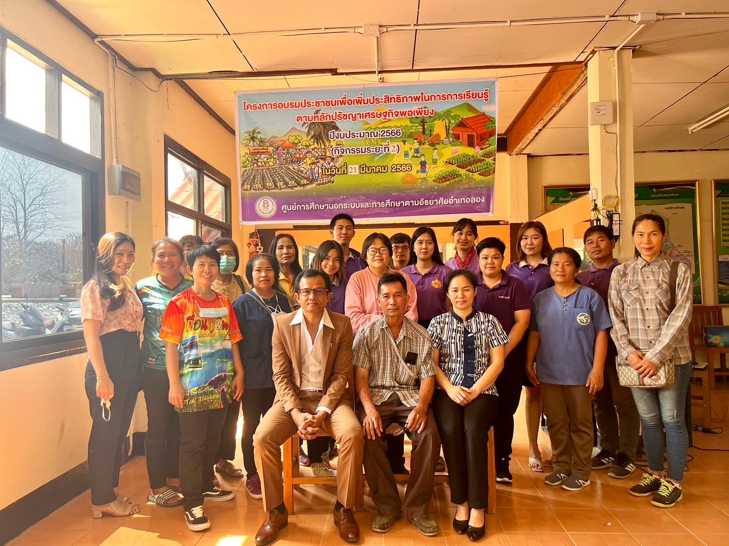 วันที่21 มีนาคม 2566 นางสาวรติรัตน์ อินต์ธะวิชัย ผอ.กศน.อำเภอลอง มอบหมายให้นางสาวลัดดาวัลย์ ซุ่นฮะ และคณะครู บุคลากร กศน.อำเภอลอง ดำเนินโครงการ อบรมประชาชนเพื่อเพิ่มประสิทธิภาพในการเรียนรู้ตามหลักปรัชญาของเศรษฐกิจพอเพียง ประจำปี2566 กิจกรรมระยะที่2 แนวทางการจัดการเรียนรู้เศรษฐกิจพอเพียงในสถานศึกษาแบบมีส่วนร่วม ณ กศน ตำบลห้วยอ้อ อำเภอลอง จังหวัดแพร่