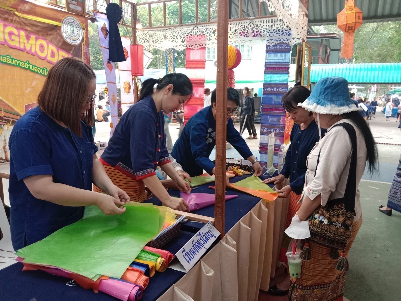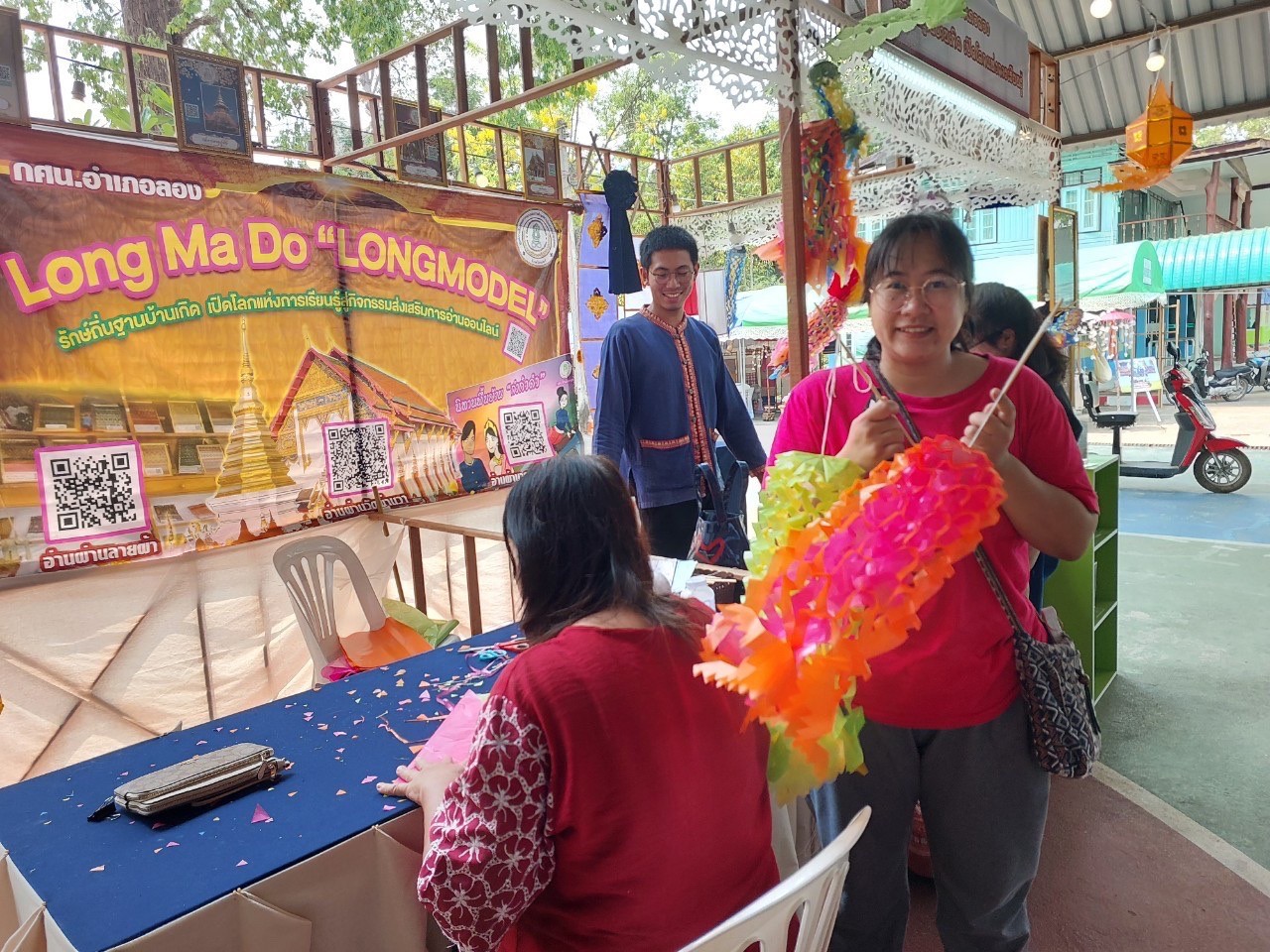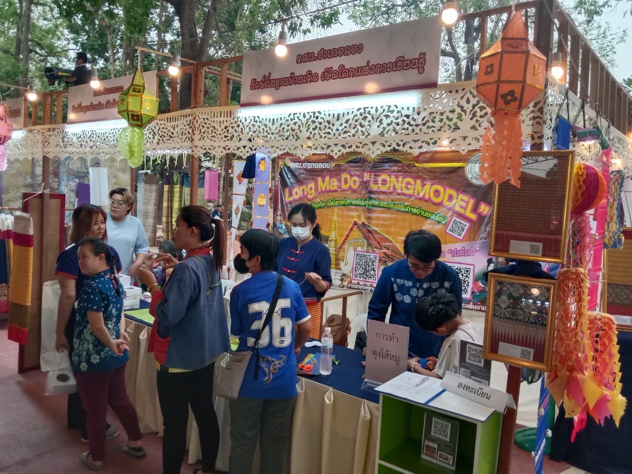 วันที่7-9 เมษายน2566นางสาวรติรัตน์ อินต์ธะวิชัย ผอ.กศน.อำเภอลอง พร้อมด้วยคณะครู กศน.อำเภอลอง จัดกิจกรรมส่งเสริมการเรียนรู้ กิจกรรมฝึกทักษะการตัดตุงไส้หมู ส่งเสริมการจำหน่ายผลิตภัณฑ์ของชุมชน เพื่อส่งเสริมและสนับสนุนการ ท่องเที่ยวชุมชนของอำเภอลอง จำนวนผู้เข้าร่วม55คน และร่วมพิธีเปิดงาน ” เส้นสายลายศิลป์ ถิ่นเมืองลอง” ณ โรงเรียนลองวิทยา อำเภอลอง จังหวัดแพร่