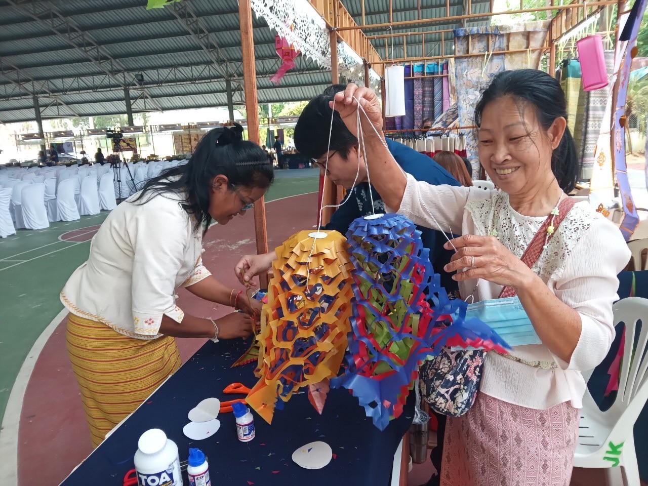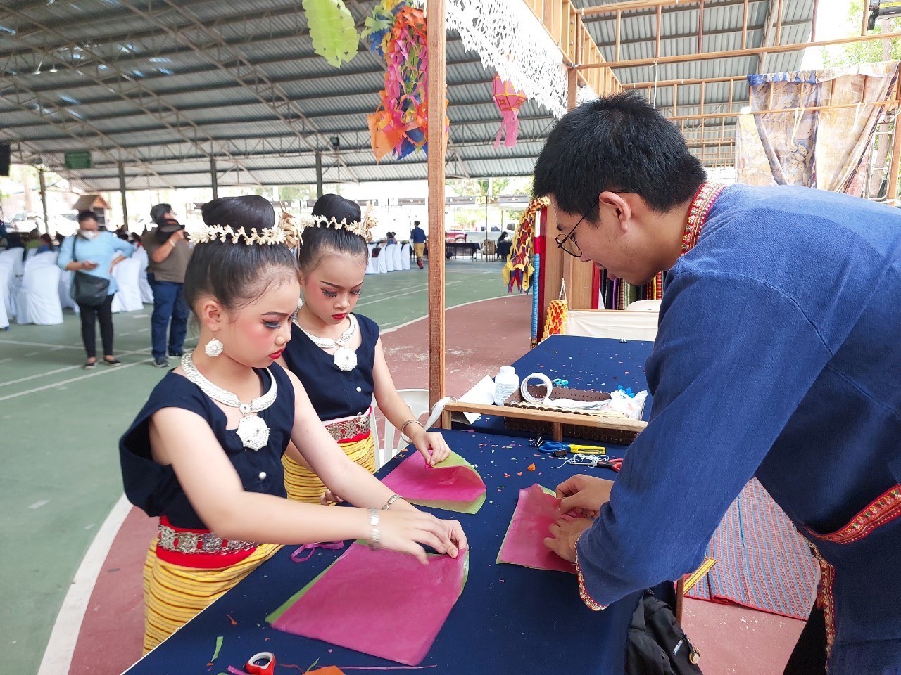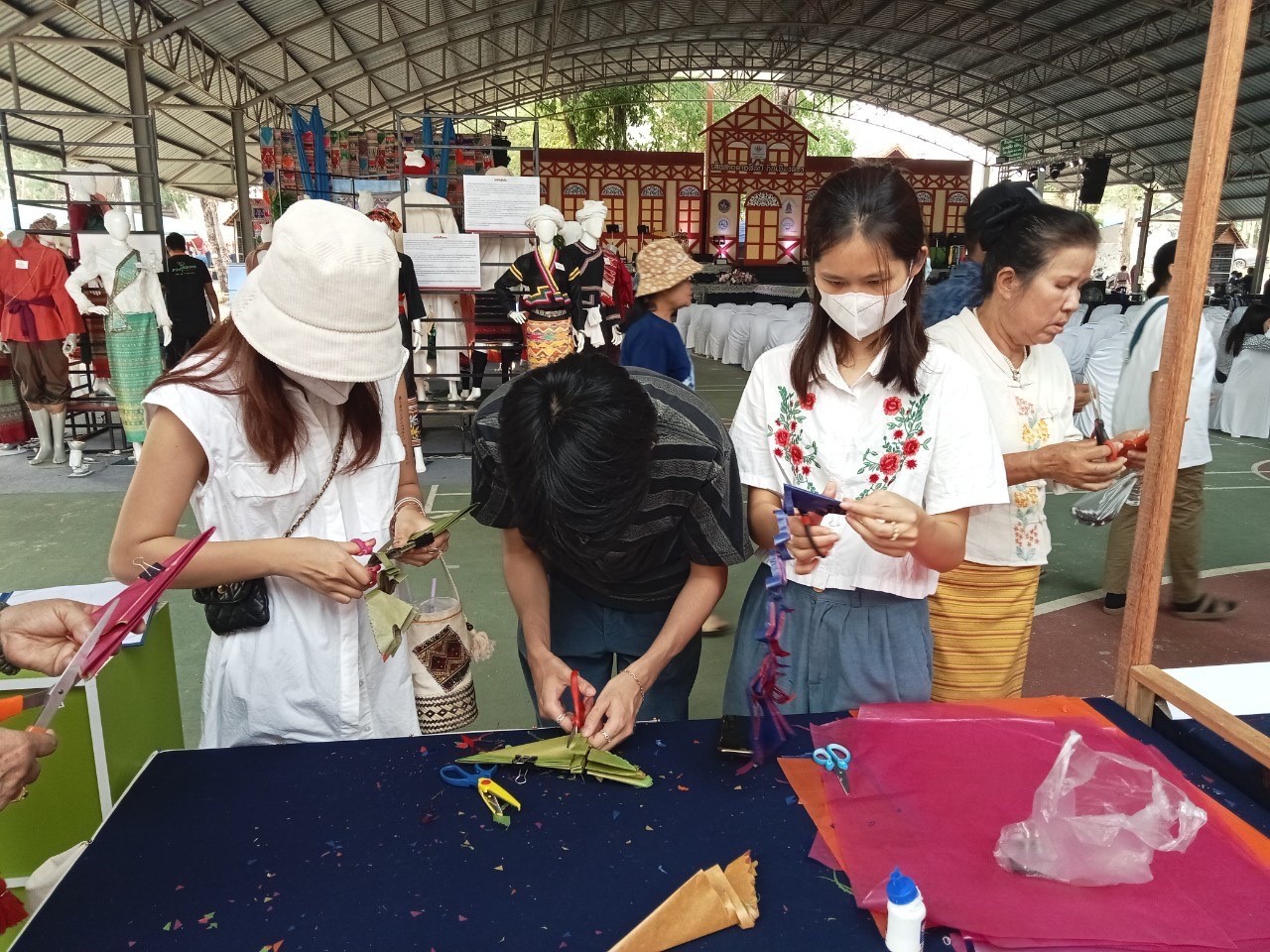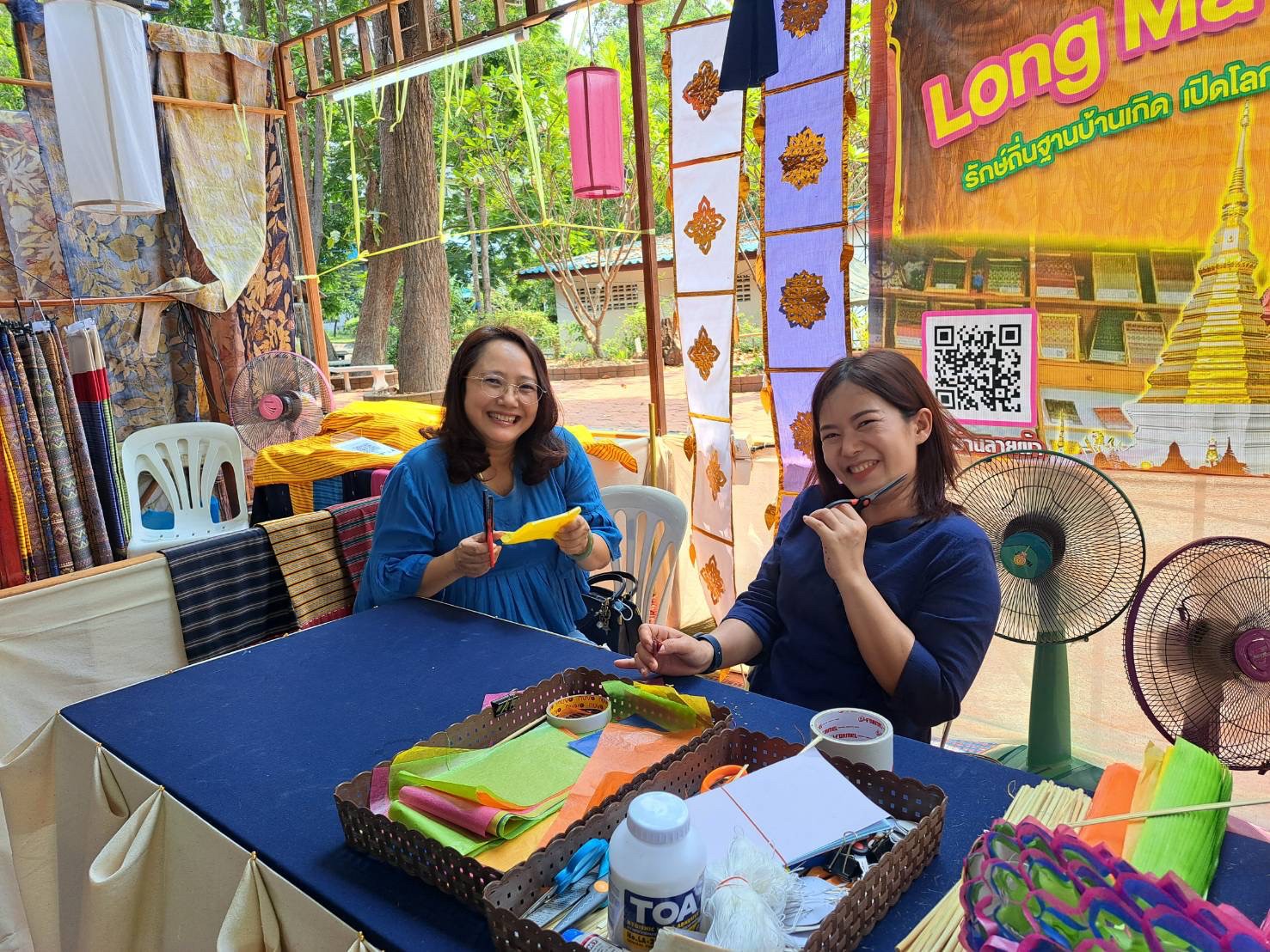 วันที่7-9 เมษายน2566นางสาวรติรัตน์ อินต์ธะวิชัย ผอ.กศน.อำเภอลอง พร้อมด้วยคณะครู กศน.อำเภอลอง จัดกิจกรรมส่งเสริมการเรียนรู้ กิจกรรมฝึกทักษะการตัดตุงไส้หมู ส่งเสริมการจำหน่ายผลิตภัณฑ์ของชุมชน เพื่อส่งเสริมและสนับสนุนการ ท่องเที่ยวชุมชนของอำเภอลอง จำนวนผู้เข้าร่วม55คน และร่วมพิธีเปิดงาน ” เส้นสายลายศิลป์ ถิ่นเมืองลอง” ณ โรงเรียนลองวิทยา อำเภอลอง จังหวัดแพร่